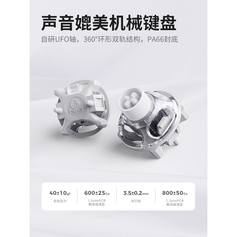 Công tắc chơi game từ tính GravaStar UFO: Được thiết kế để có độ chính xác 0,005mm với độ sâu cò có thể điều chỉnh (0,005mm–3,5mm) để loại bỏ độ trễ và tăng cường khả năng kiểm soát. Điểm kích hoạt