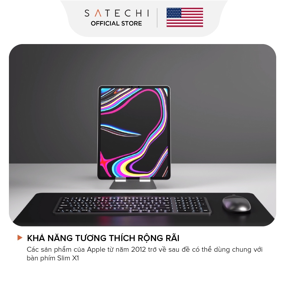 Bàn phím không dây Satechi Slim X1 / X2 / X3 có đèn LED nền, pin lâu dài, bảo hành 12T – Hàng chính hãng