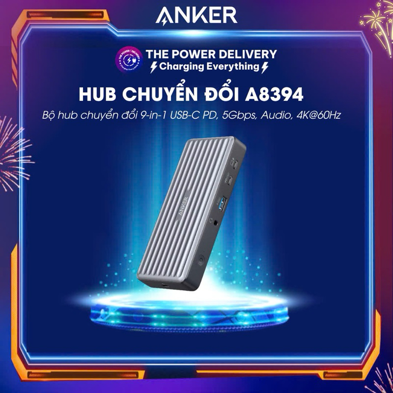 Bộ Chuyển Đổi Hub Anker 9-in-1 USB-C PD, 5Gbps, Audio, 4K@60Hz, có thể xuất 2 màn hình