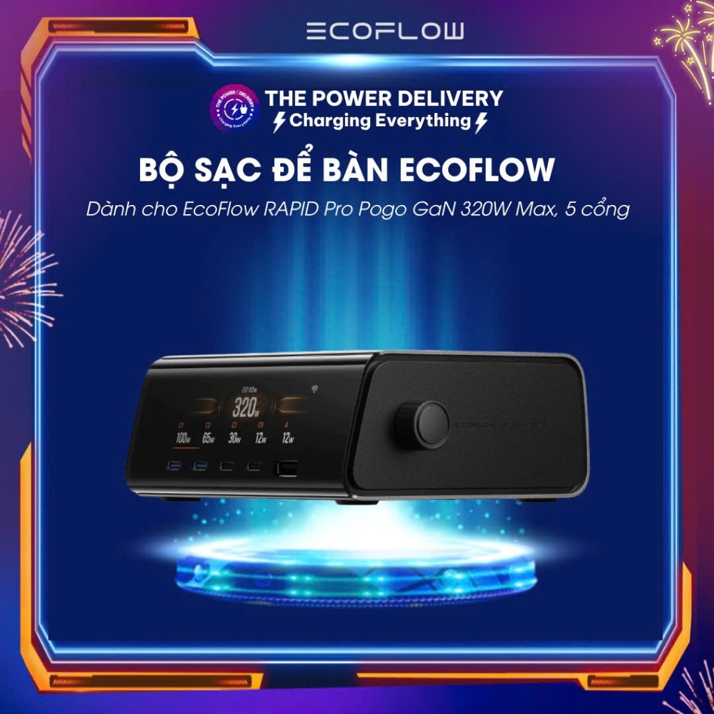 Bộ Sạc Để Bàn EcoFlow RAPID Pro Pogo, Công Suất 320W Max, 5 cổng, Công Nghệ GaN, Màn Hình Chi Tiết