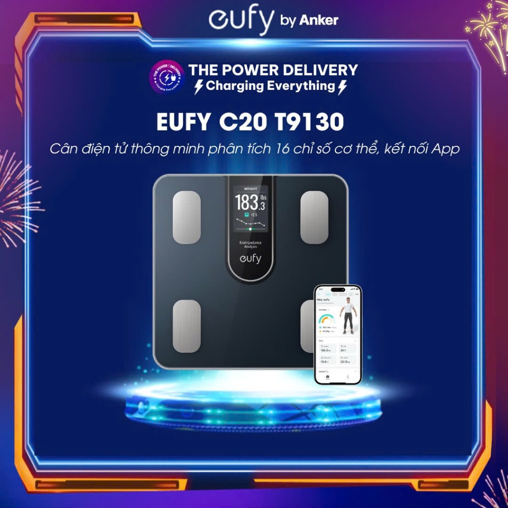 Cân điện tử thông minh EUFY C20 T9130, phân tích 16 chỉ số cơ thể, nhỏ gọn, kết nối App – Hàng chính hãng