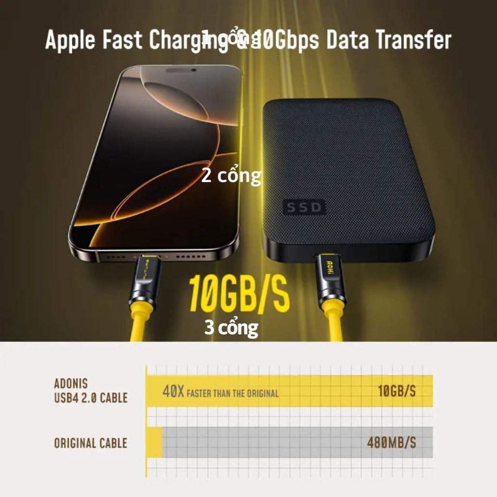 🔹Sạc nhanh Ap & Truyền dữ liệu 10Gbps: Được thiết kế cho IP Series 16/15, cáp này mở khóa toàn bộ tiềm năng của cổng USB-C với tốc độ 10Gbps cực nhanh — nhanh hơn 40 lần so với cáp tiêu chuẩn 480mbps. Dễ dàng truyền video độ phân giải cao và tệp lớn với thời gian chờ tối thiểu, tăng hiệu quả và năng suất.