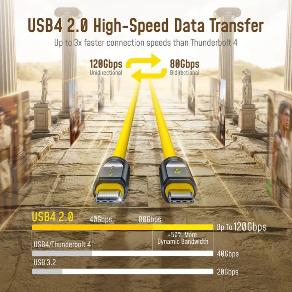 🔹Tốc độ và hiệu suất thế hệ tiếp theo: Trải nghiệm tốc độ đơn hướng vô song lên đến 120Gbps và tốc độ song hướng lên đến 80Gbps, giúp việc truyền tệp, phát trực tuyến video 8K và tính toán hiệu suất cao trở nên dễ dàng. Được thiết kế cho các cải tiến AI, VR và AR, loại cáp này đảm bảo tốc độ truyền dữ liệu nhanh gấp 3 lần cho cả chuyên gia và người đam mê.