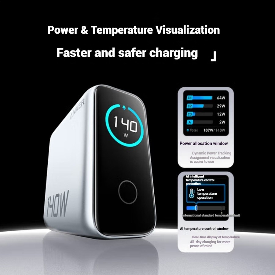 Củ sạc Anker Zolo 140W GaN A2697, màn hình LED, 3 cổng Type C, sạc nhanh PD, PPS 2.0 10Củ sạc Anker Zolo 140W GaN A2697, màn hình LED, 3 cổng Type C, sạc nhanh PD, PPS 2.0 12