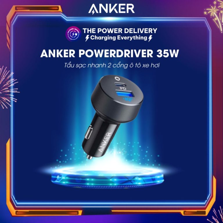 Tẩu sạc nhanh 2 cổng ô tô xe hơi Anker PowerDrive 35W A2732 Sạc nhanh 20W