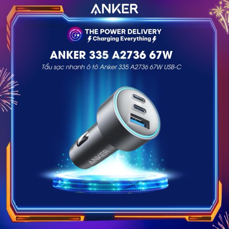 Tẩu sạc nhanh Anker A2737 công suất 167.5W hỗ trợ PD cổng Type C 100w có LED xung quanh dành cho điện thoại laptop