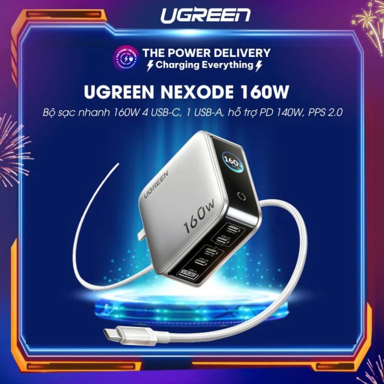 Bộ sạc nhanh UGREEN 200W CD271 Nexode GaN II 6 cổng sạc nhanh kèm USB C to C 100W