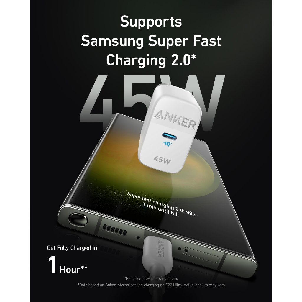 Củ sạc nhanh Anker 313 45W PPS 2.0 PD QC 3.0 – A2643, tương thích với Samsung hỗ trợ sạc siêu nhanh
