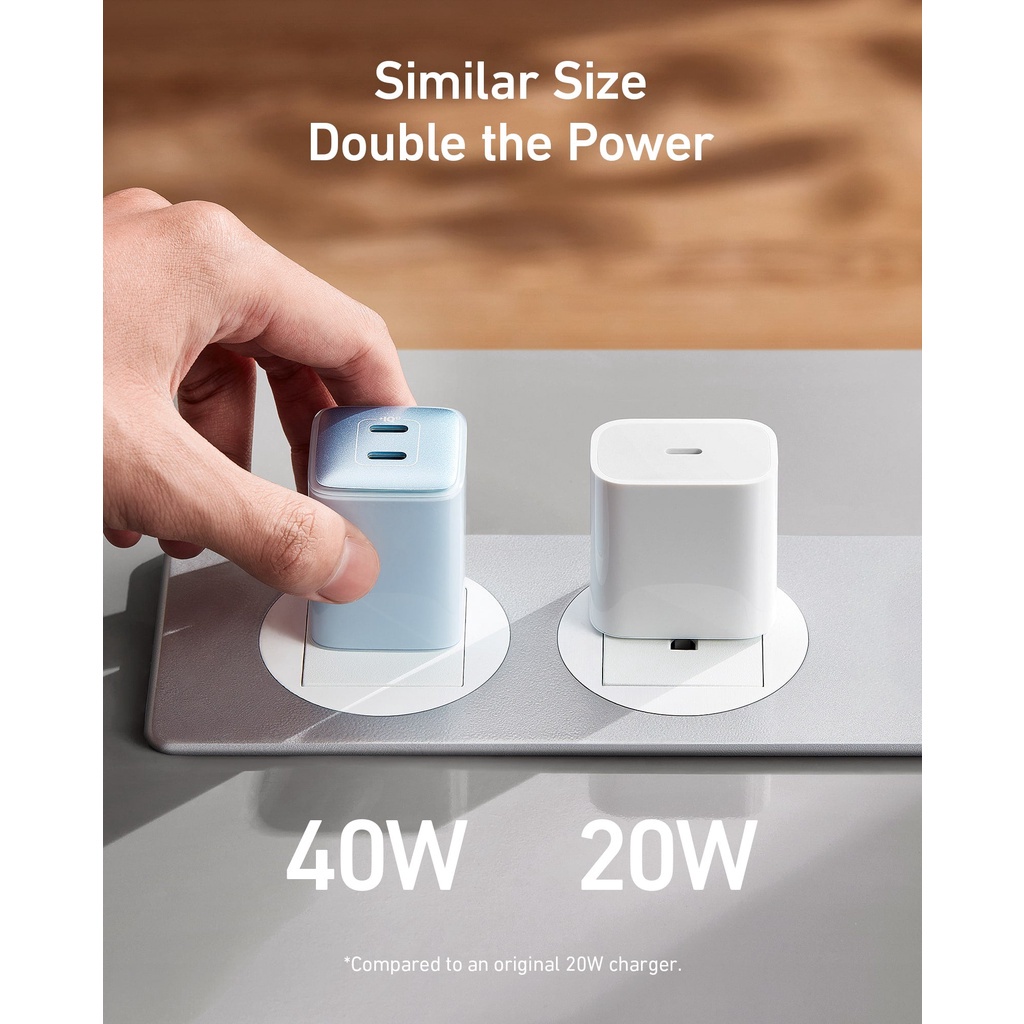 Nhỏ hơn 44% so với 2 bộ sạc IP 20W ban đầu được ghép lại với nhau, nhưng chỉ có công suất tương đương.