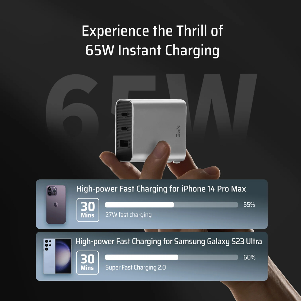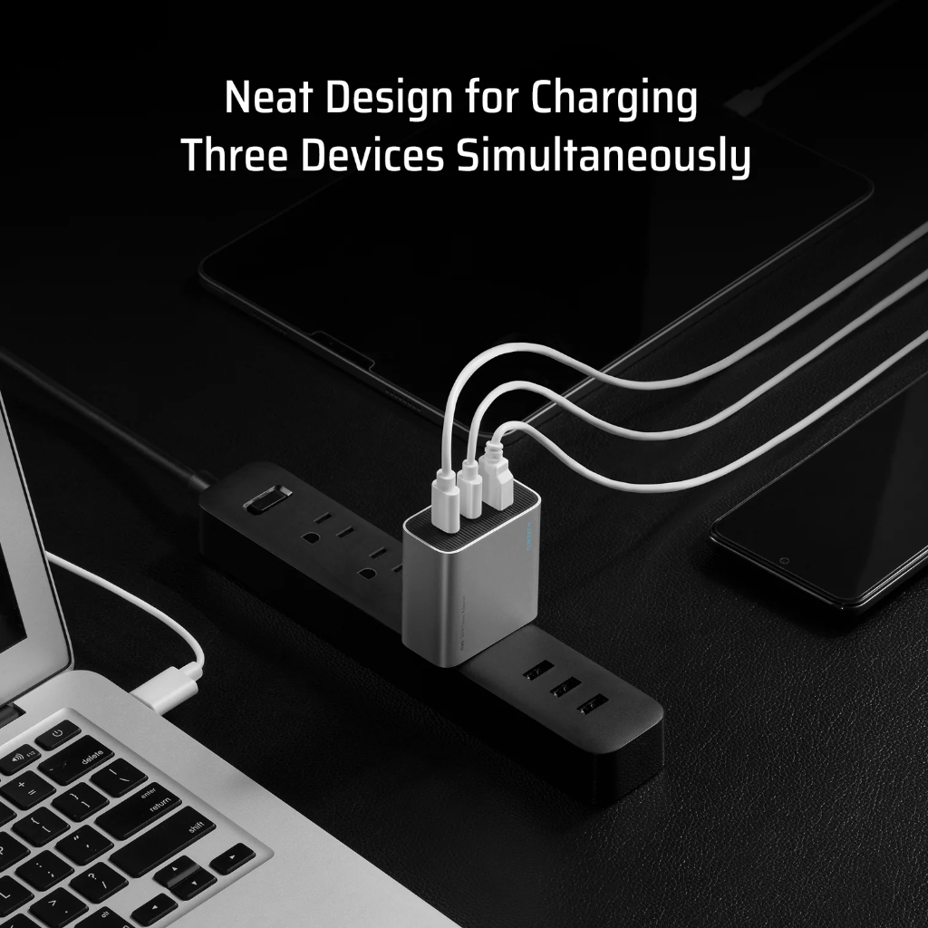 – Sạc nhiều thiết bị cùng lúc: Tăng tốc đến 3 thiết bị cùng một lúc với đầu ra ba cổng 2C1A. Tổng cộng 65W điện năng chảy hiệu quả qua 3 cổng, đảm bảo mỗi thiết bị nhận được lượng sạc tối ưu.