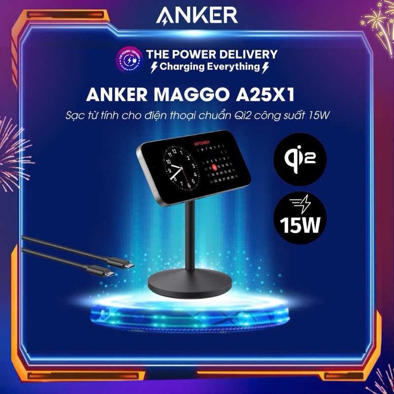 Đế sạc Anker Maggo A25X1, sạc từ tính cho điện thoại chuẩn Qi2 công suất 15W – BH 18 tháng