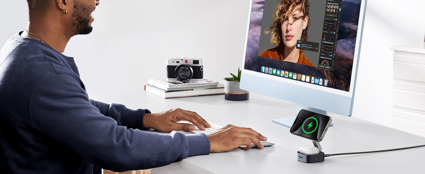 – Tối đa hóa hiệu suất sạc của bộ sạc không dây 2 trong 1 bằng cách sử dụng bộ sạc Type-C PD 30W trở lên (không đi kèm củ sạc)