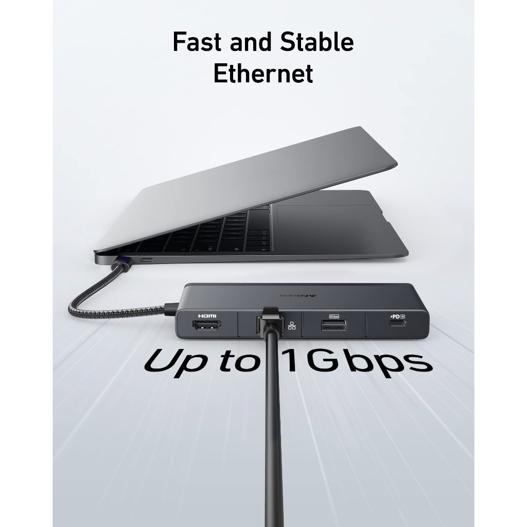 Anker 552 A8373 9 in 1 mang đến hai cổng USB 3.0 với tốc độ truyền dữ liệu lên đến 5 Gbps. Hai cổng USB-A (480 Mbps) hỗ trợ và một cổng HDMI 4K cho phép xuất hình ảnh chất lượng cao lên màn hình ngoài, hỗ trợ phân giải độ phân giải lên tới 4K@30Hz.