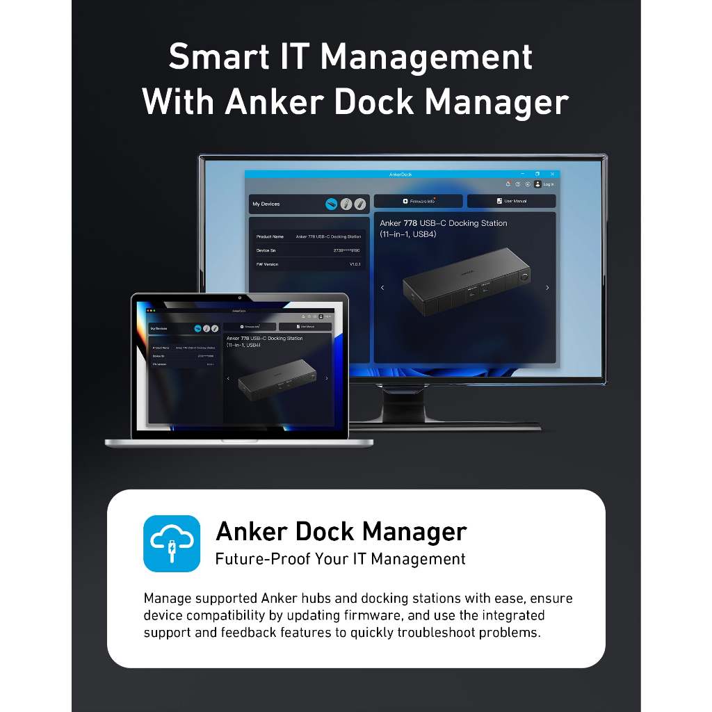 Dễ dàng cập nhật chương trình cơ sở của đế cắm và khắc phục sự cố thông qua ứng dụng Anker Dock Manager.