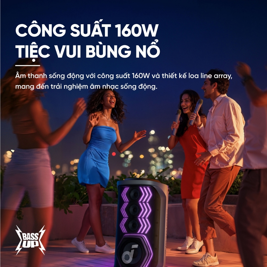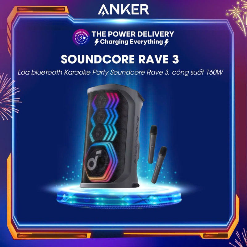 Loa Bluetooth Karaoke Party Soundcore Rave 3, Công suất 160W, kèm 2 mic không dây, điều khiển qua App