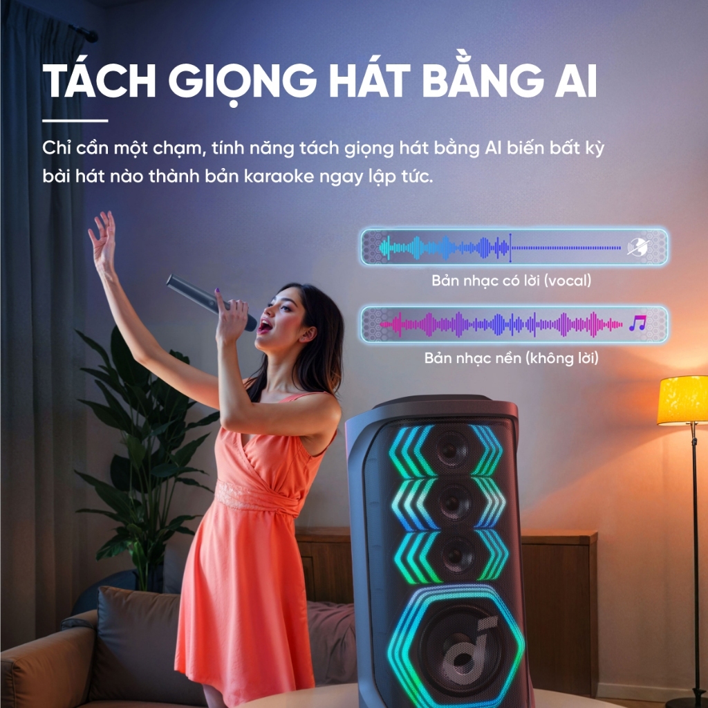 – Công nghệ AI Vocal Removal: giúp biến mọi bài hát thành phiên bản karaoke chỉ với một nút bấm