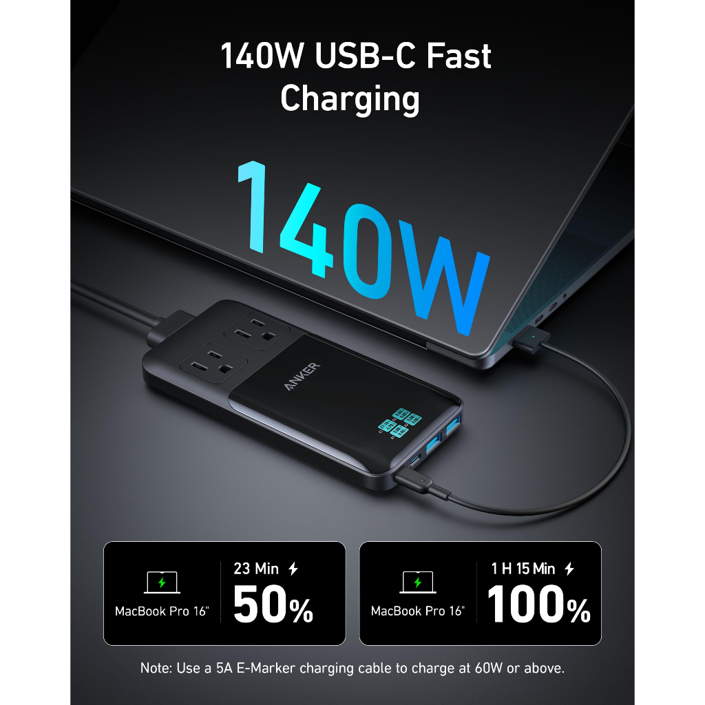● Sạc tốc độ cao 140W: Công nghệ GaN thế hệ mới đảm bảo sạc tốc độ tối đa cho các thiết bị của bạn có nhiều cổng chia sẻ nguồn điện 140W