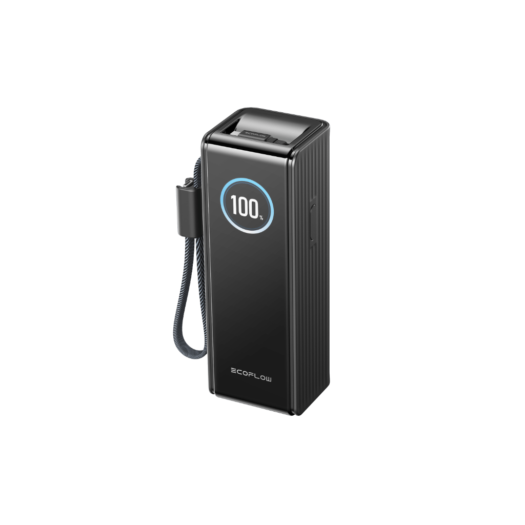 Không còn tình trạng thất lạc dây cáp nữa—cáp USB-C 100W tích hợp có thể thu gọn và dây buộc luôn ở đó, được giấu gọn gàng trong thiết kế đẹp mắt của bộ sạc dự phòng, với cơ chế có thể thu gọn cho phép bạn lấy nguồn điện trong vài giây.
