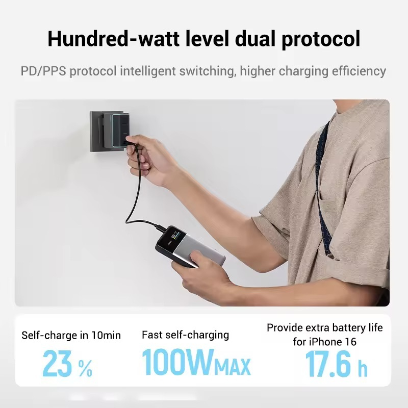 – Công suất sạc tối đa 100W, hỗ trợ sạc laptop (Mac, Lenovo, Huawei MateBook, v.v.).
