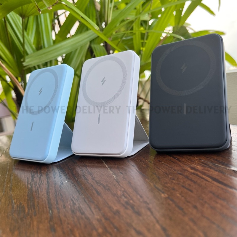 MagGo là Pin dự phòng 5.000 mAh có đính kèm chân đế gập được, có tích hợp sạc không dây và cổng sạc USB-C