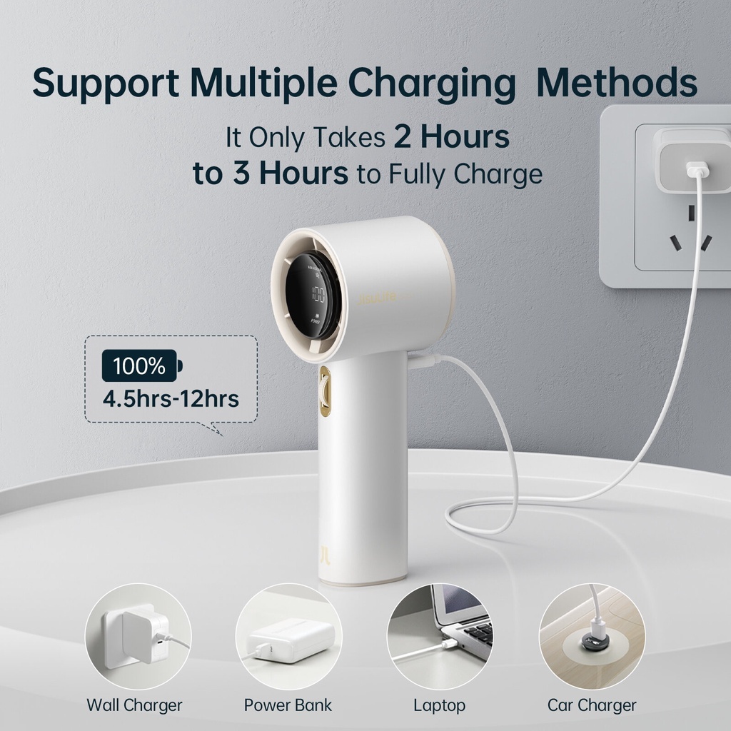 Quạt Cầm Tay Cao Cấp JISULIFE Pro1 (FA53 ABS) Sạc nhanh 18W – Đèn LED Hiển Thị – Sử Dụng 12 giờ tối đa – Hàng Chính hãng