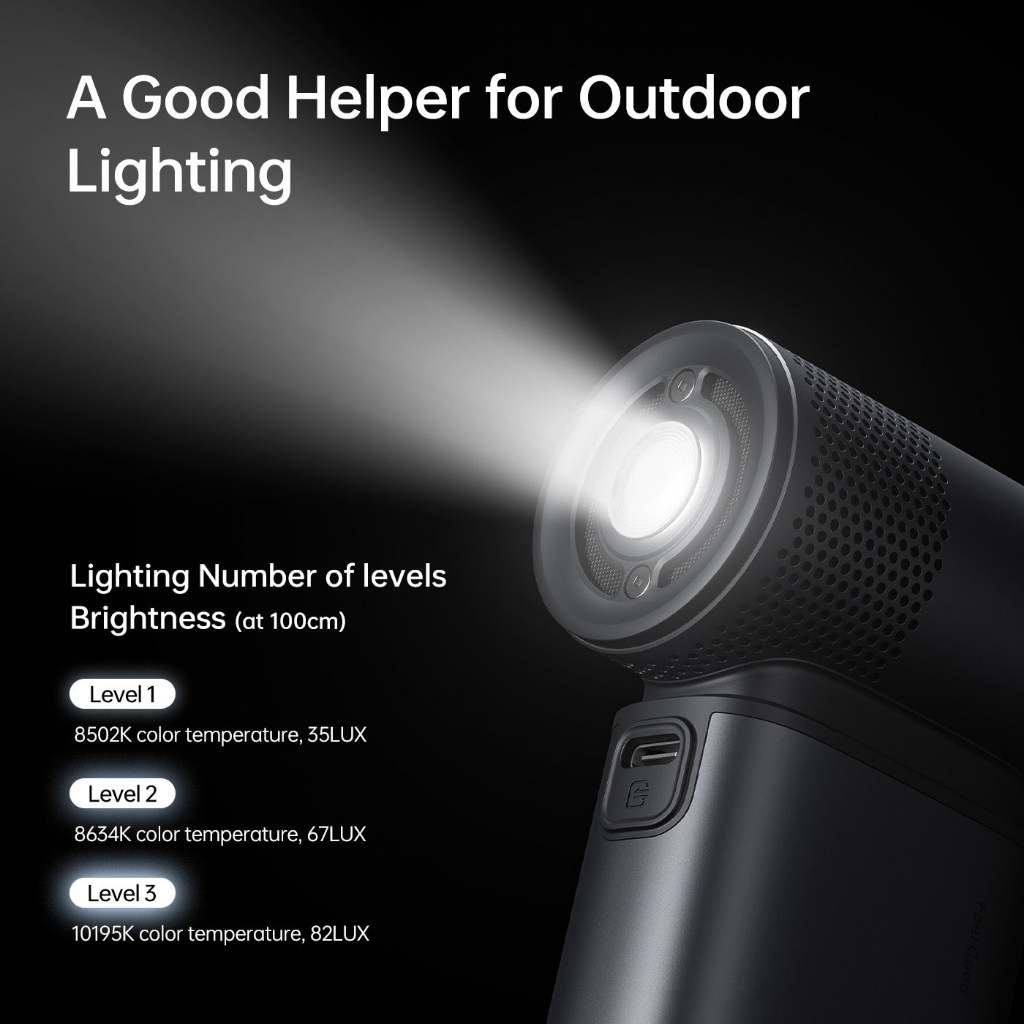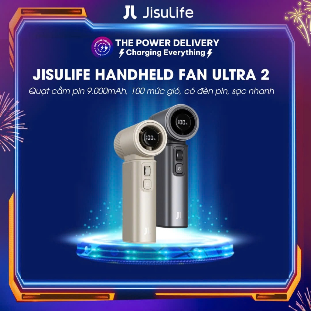 Quạt cầm tay Jisulife Handheld Fan Ultra 2, pin 9.000mAh, 100 mức gió, có đèn pin, sạc nhanh cho IP, cảm biến gió 17m/s