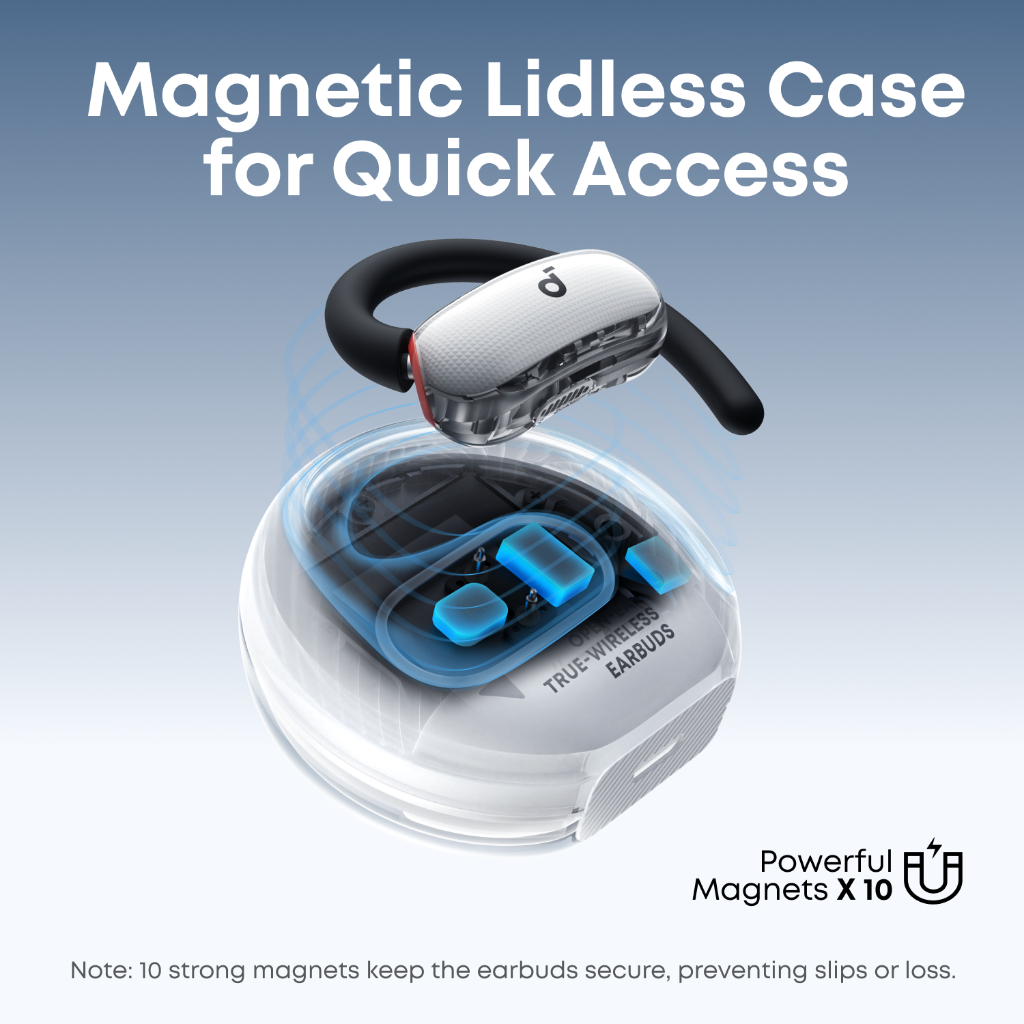 Thiết kế thanh lịch, sẵn sàng cho tương lai: Vỏ trong suốt của V40i có nam châm mạnh mẽ để tránh mất mát ngoài ý muốn và thanh đèn để thông báo cho bạn. Nhỏ gọn, di động và hiện đại—thưởng thức âm nhạc theo phong cách của bạn ở bất cứ nơi đâu.