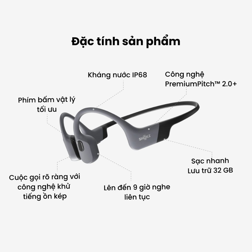 Tận hưởng âm thanh rõ ràng, mạnh mẽ với âm trầm ấn tượng bởi công nghệ truyền âm thanh qua xương PremiumPitch™ 2.0+. Bạn có thể dễ dàng chuyển đổi giữa các chế độ phát nhạc, gọi điện và bơi lội đảm bảo chất lượng âm thanh mọi lúc mọi nơi