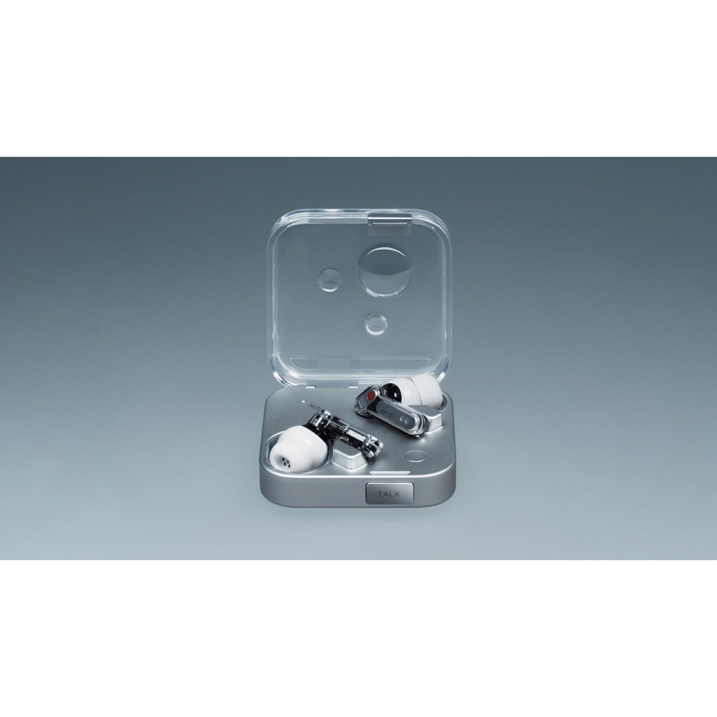 Điểm nhấn trong cải tiến của Ear (3) chính là Super Mic. Được tích hợp bên trong hộp sạc, hệ thống micro kép này được điều khiển bởi công nghệ lọc tiếng ồn xung quanh, tập trung vào giọng nói của bạn và loại bỏ tiếng ồn xung quanh lên đến 95 dB, đảm bảo cuộc gọi rõ ràng trong mọi môi trường. Super Mic có thể được kích hoạt bằng cách nhấn nút TALK trên hộp sạc, mang lại âm thanh rõ ràng cho các cuộc trò chuyện nhanh hoặc thảo luận kéo dài.