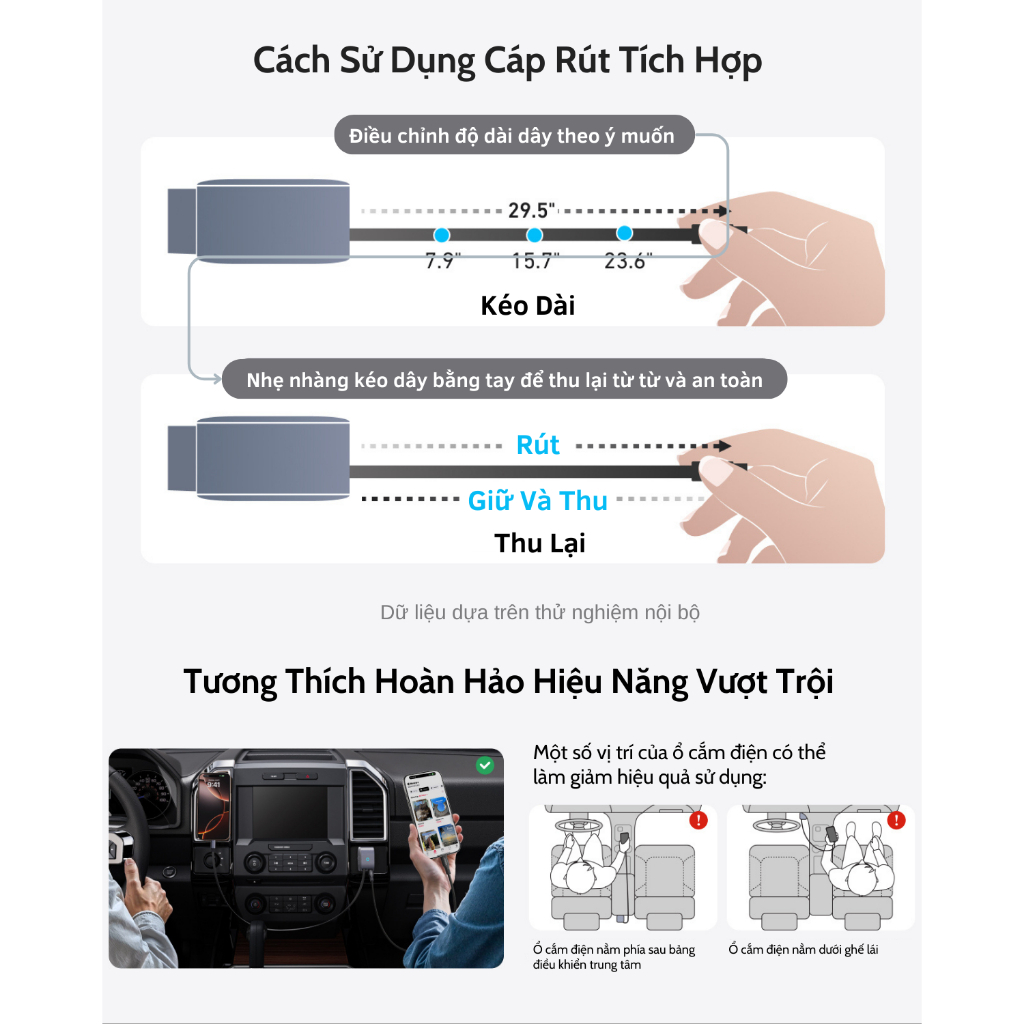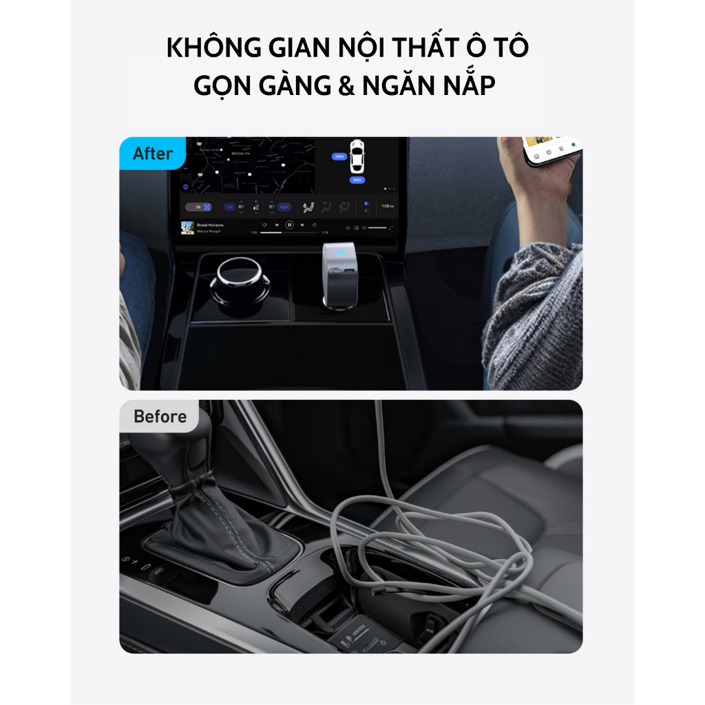 + Keep Your Car Organized: Giữ cho không gian xe hơi gọn gàng, ngăn nắp với thiết kế cáp thu gọn thông minh.